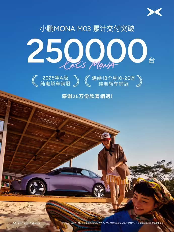 小鹏 MONA M03 汽车累计交付突破 25 万台