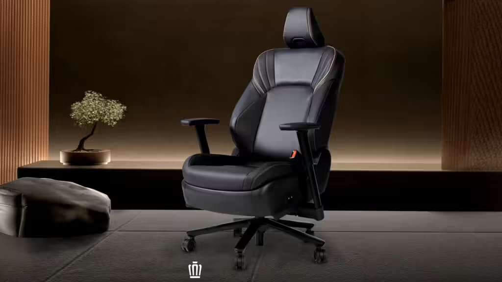 丰田推出了一款皇冠办公椅,配备了安全带卡扣设计。那些高端品牌总会费尽心思宣传自家座椅的设计理念,而负责丰田多款车型内饰研发的丰田纺织,并没有从零打造一款充满未来感的电竞风老板椅,而是直接参照丰田皇冠的