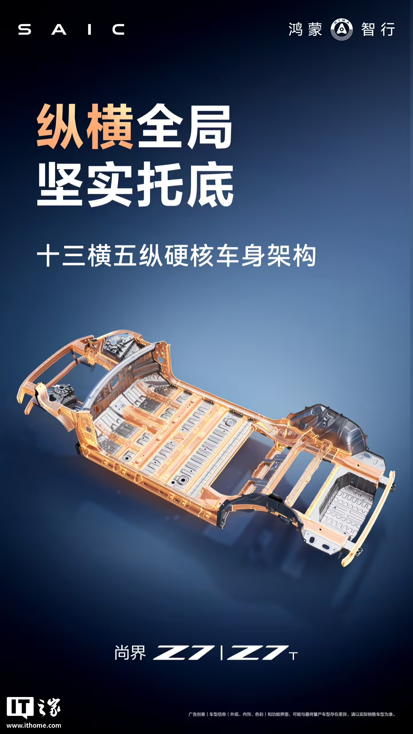 鸿蒙智行官方今日继续预热尚界Z7/Z7T双车,此次重点介绍了新车的安全配置:①全系标配十三横五纵车身架构,高强度钢+铝合金占比达91%;②超宽高强度铝合金双前防撞梁,宽度覆盖率75.4%;③超宽高强度