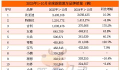 CleanTechnica数据显示,2025年1-10月,全球新能源车销量达1646.8万辆,同比增长22.3%。其中,9月全球新能源车销量达129.1万辆,同比大涨48%,成为拉动全球市场增长的关键